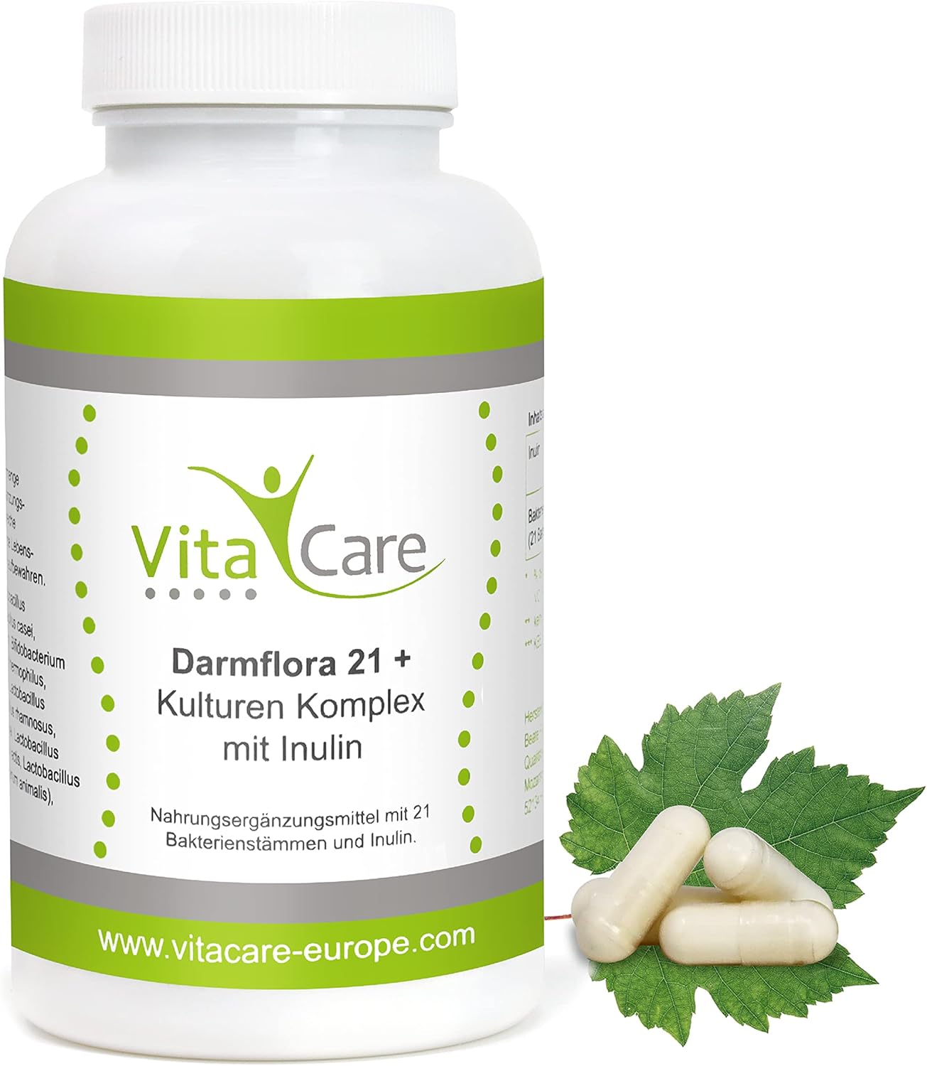 Vitacare Darmflora 21 Bakterienkulturen Kulturenkomplex Mit Inulin 21 Bakterienstamme Mit Prabiotikum 180 Vegane Magensaftresistente Kapseln Amazon De Drogerie Korperpflege